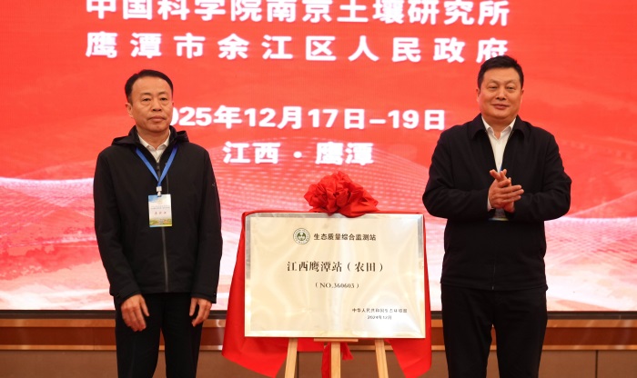 开幕式上,沈仁芳所长与江西省生态环境监测中心副主任储险峰共同为“生态环境部生态质量综合监测站江西鹰潭站”揭牌,这意味着红壤生态监测体系又添了一个“硬核”平台。